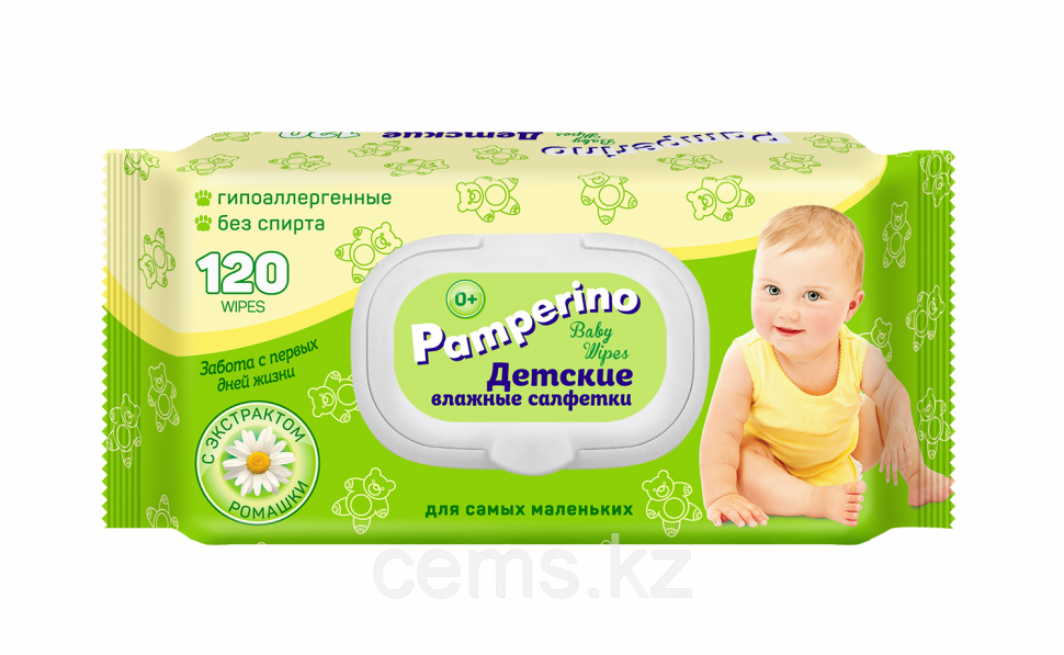Pamperino №120 детские влажные салфетки с пластиковым клапаном с ромашкой.