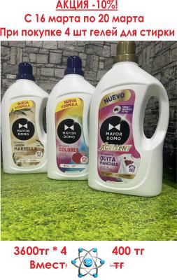 Только с 16 марта по 20 марта при покупке гелей для стирки от 4 шт бренда Mayordomo скидка -10%.