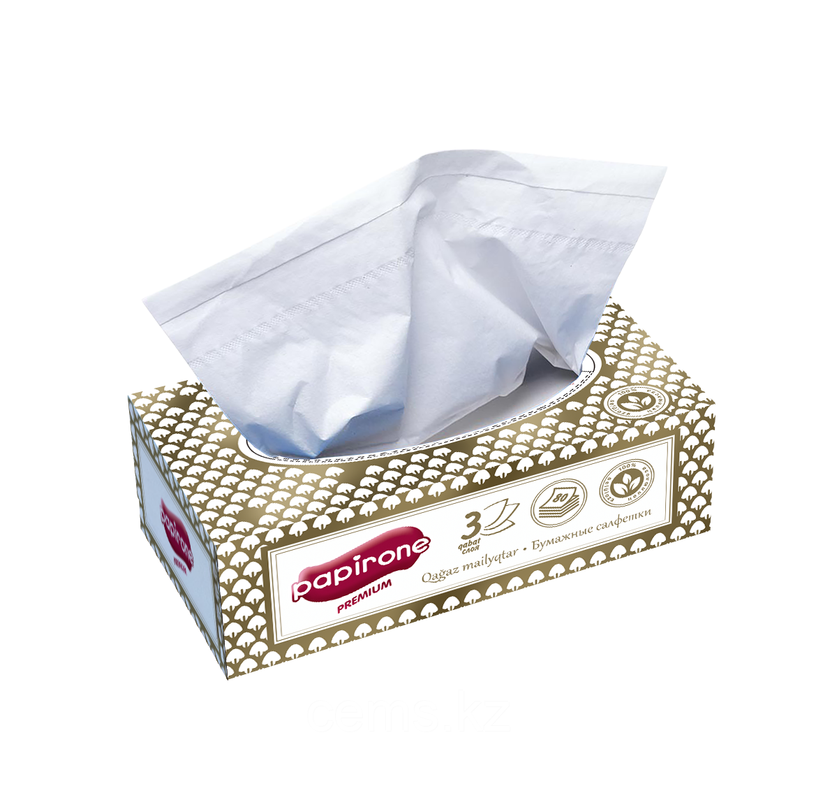 Салфетки в коробке Papirone 155*200, 3 слоя, 80шт, золото