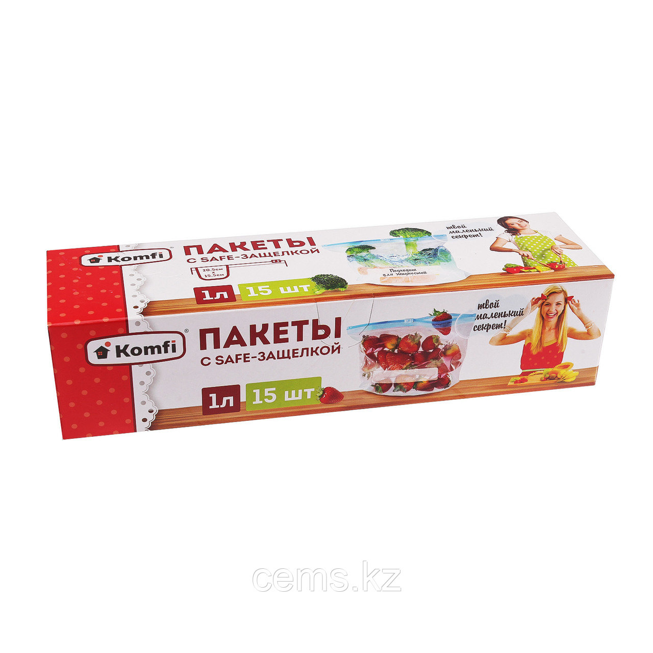 Пакеты с safe-защелкой 1л М 15 шт. в наборе Komfi/25
