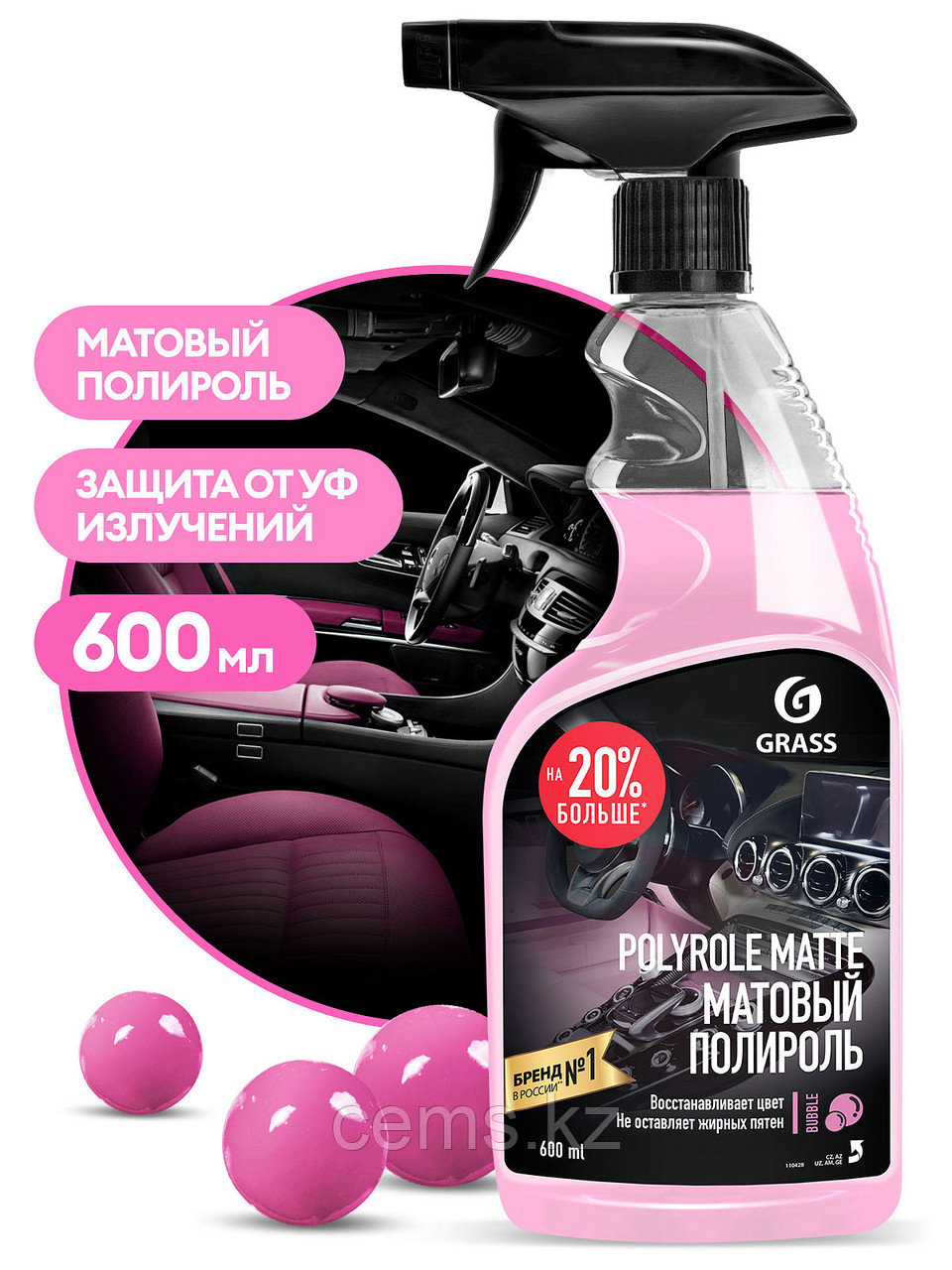 Профессиональный матовый полироль для обработки приборных панелей, очистки и полировки изделий из кожи, дерева, винила, пластика и резины. Сохраняет первоначальный цвет, не оставляет жирных пятен, препятствует оседанию пыли, придает матовый блеск. Средство обладает приятным ароматом.